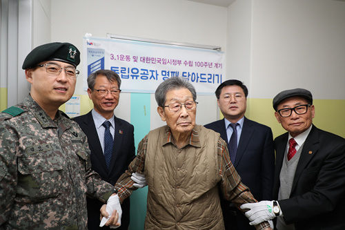 나치만 경기남부보훈지청장, 한대희 군포시장, 김인건 제51보병사단 사단장은 군포2동 거주 김유길(1919년생) 옹의 가정에 ‘독립유공자 명패’를 직접 달아드리며 감사인사를 전했다.