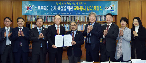 경기도교육청(교육감 이재정)은 경기대학교와 도내 초·중·고등학교 소프트웨어 교육을 위해 7일‘소프트웨어 인재육성을 위한 교육봉사 업무협약식’을 가졌다.