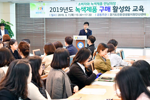 교육은 녹색제품 의무구매제도 설명, 녹색제품 구매방법 안내 등으로 진행됐다. 유미화 경기도친환경생활지원안산센터장과 유재식 친환경상품지원센터 대표가 강연했다.
