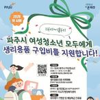 모든 파주시 11~18세 여성청소년 여러분, 생리용품 지원 신청하세요