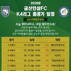 금산인삼에프씨(FC), 2026 시즌 케이(K)4리그 홈경기 일정 안내