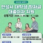 안성시, '상반기 대학생 학자금 대출이자 지원' 5월 1일까지 접수