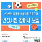 안성시, '2026 종목별 생활체육 프로그램' 운영… 시민 건강 증진 앞장