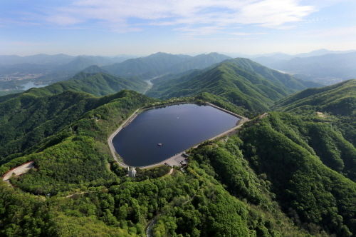 호수 주변에는 팔각정을 비롯해 전망대가 마련돼 있다. 이곳에 서면 푸른 물과 파란 하늘이 쪽빛을 만들어내 싱싱함과 젊음을 안겨준다.