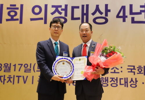 평택시의회 김수우 의원(산업건설위원회 위원장)과 유영삼 의원은 지난 17일 국회의원회관 대회의실에서 열린 ‘2018 제7회 지방자치 행정대상·지방의회 의정대상 4년 종합시상식’에서 ‘2018 대한민국 지방의회 의정대상’을 수상했다.