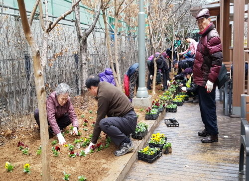 이날 참가자들은 청사 앞뒤 화단에 팬지, 리빙데이지 등 봄꽃 4천본을 직접 심고 비료주기 등을 실시했다.