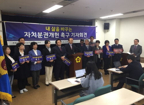 지방분권개헌 경기회의는 지난 3월19일 오전 11시, 경기도의회 브리핑룸에서 정치권과 정부가 조속한 시일 내에 지방분권개헌이 이루어질 수 있도록 노력할 것을 촉구하는 기자회견을 가졌다.