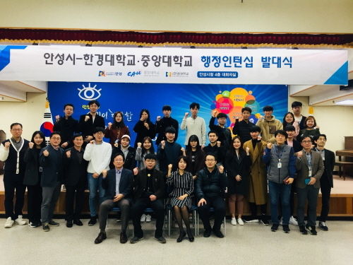 추운 겨울이 지나고 봄의 새싹이 트는 계절, 3월 16일 안성시청 본관 4층에서 한경대, 중앙대 학생과 안성시 공무원이 한 팀이 되어 안성시 시정 발전을 위한 주제를 선정, 한 학기 동안 함께 연구하고 최종 결과물을 도출해내는 프로그램인 대학생 행정인턴십 발대식을 가졌다.