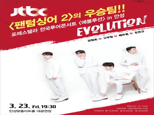 오는 3월 23일(금) 오후 7시 30분 안성맞춤아트홀 대공연장에서 JTBC 팬텀싱어2의 우승팀 포레스텔라의 “에볼루션” 공연이 개최된다.