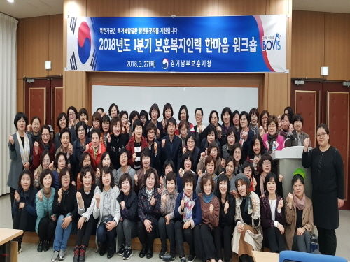 경기남부보훈지청(지청장 구남신)은 2018.3.27(화) 보훈교육연구원에서 보훈재가복지서비스를 제공하는 보훈복지인력의 및 역량강화를 위해 ‘보훈복지인력 한마음 워크숍’을 개최했다.