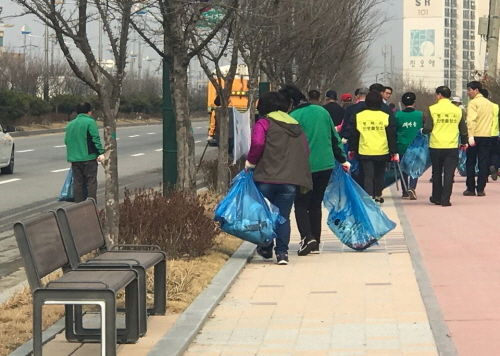 평택시 포승읍사무소(읍장 이종학)는 지난 27일 평택시의 관문인 평택항에서 민・관 합동으로 2018년 새봄맞이 일제대청소를 실시했다.