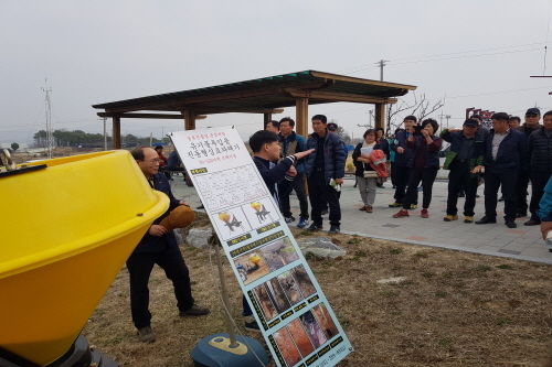 이외에도 이천시농업기술센터는 센터에서 개발한 심토파쇄기를 추가로 시연을 보였으며 과수원의 퇴비 공급시 심층시비를 통해 질소손실을 줄이고 경반층을 파쇄하여 토양물리성을 개선할 수 있는 방안을 제시하였다.