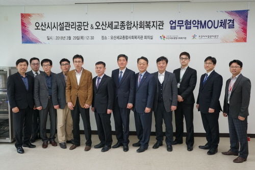 세교복지타운에서 진행된 이번 협약식은 조용호 오산시시설관리공단 이사장, 강대봉 오산세교종합사회복지관 총괄관장 등 양 기관 주요관계자 20여명이 참석한 가운데 진행되었다.