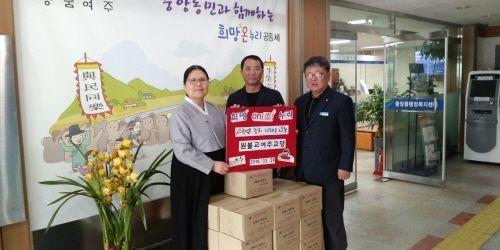 원불교 여주교당에서는 매년 봄 원불교 최대 명절인 대각개교절을 맞아 교도들이 정성스럽게 담근 김치를 중앙동 직원과 함께 어려운 이웃들에게 전달하고 있다.