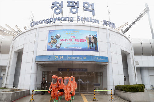 가평군은 경기도와 합동으로 5일 청평역에서 국지도발 실제훈련을 실시했다.