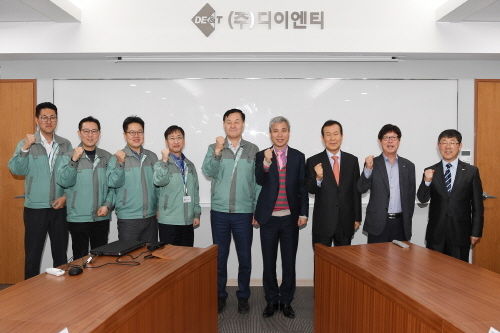 방문현장에서 곽 시장은 “㈜디이엔티는 2017년 11월 가장2산업단지에 새로운 오산공장을 건설하여 현재 200여명의 직원이 근무하고 있으며, 2월말 기준 1,804억원의 매출을 달성한 건실한 기업으로써 오산시로 확장․이전하게 된 것을 환영한다.”고 전하였으며,