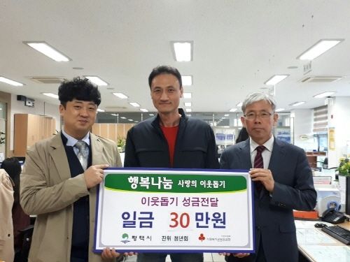 평택시 진위 청년회(회장 장석천)는 지난 4일 회원들의 뜻을 모아 이웃 돕기 성금을 마련하여 어려운 지역아동들에게 조금이나마 보탬이 되길 바란다며 진위면에 30만 원을 지정 기탁했다.