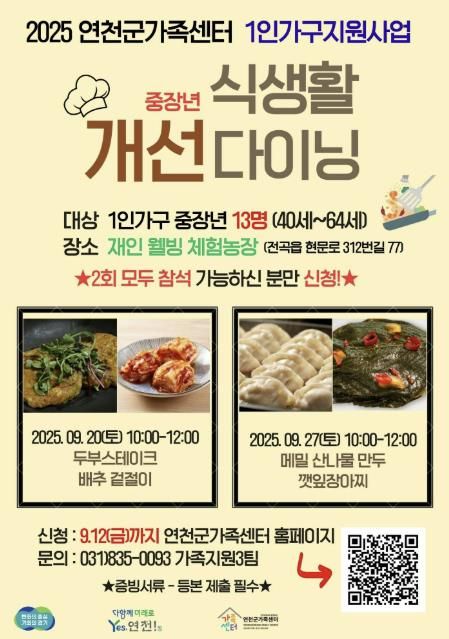 (중부시사신문) 연천군가족센터는 오는 11월까지 지역 주민의 건강한 식생활 정착을 위한 실천형 프로그램인 ‘식생활개선 다이닝’을 운영한다고 4일 밝혔다.