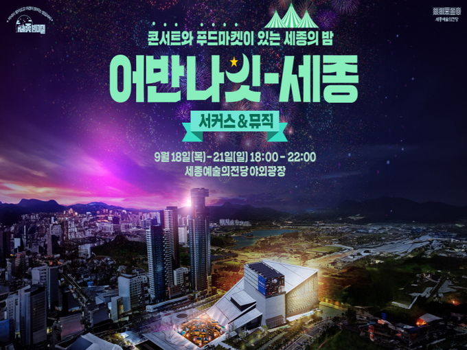 (중부시사신문) 세종시문화관광재단은 오는 9월 ‘밤마실 주간’에 맞춰 18일부터 21일까지 나흘간 세종예술의전당 야외광장에서 매일 저녁 6시부터 10시, 야간 문화행사 ‘어반나잇-세종 서커스·뮤직’ 을 선보인다.