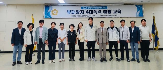 (중부시사신문) 안양시의회는 지난 22일 시의회 소회의실에서 시의원과 사무국 직원을 대상으로 ‘부패방지 및 4대폭력 예방 교육’을 진행했다. 이번 교육은 법정의무교육으로, 청렴 의식 함양과 4대폭력(성희롱, 성폭력, 성매매, 가정폭력)에 대한 예방 의식 고취를 위해 마련됐다.