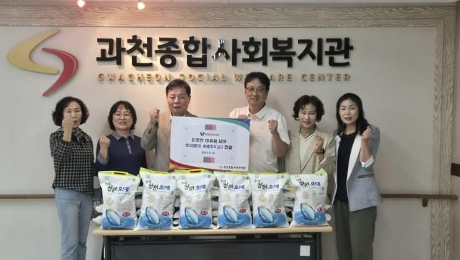 (중부시사신문) 과천시 별양동 체육회는 지난 22일 추석 명절을 앞두고 과천종합사회복지관에 쌀 4kg(28포), 약 50만 원 상당의 햅쌀을 기부했다고 밝혔다.