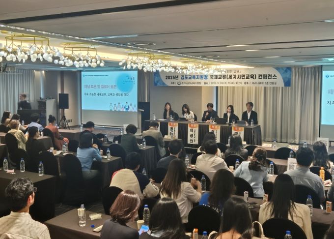 (중부시사신문) 경기도김포교육지원청은 9월 24일, 김포 마리나베이에서 『2025 김포교육지원청 국제교류협력 콘퍼런스』를 성공적으로 개최했다고 밝혔다. 이번 행사는 국내외 학교 현장의 국제교류 성공 사례와 효과적인 운영 방안을 공유하여 교원들의 국제교류 역량을 강화하고, 교육공동체 간 지속 가능한 협력 기반을 마련하기 위해 추진됐다. 이날 행사에는 김포 관내 유·초·중·고등학교 교원 100여 명이 참석해 높은 관심을 보였다.