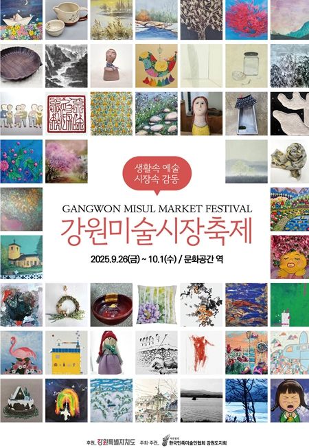 (중부시사신문) 강원특별자치도는 (사)한국민족미술인협회 강원지회와 함께 '2025년 강원미술시장축제'를 9월 26일부터 10월 1일까지 6일간 남춘천역 1층 문화공간에서 개최한다.