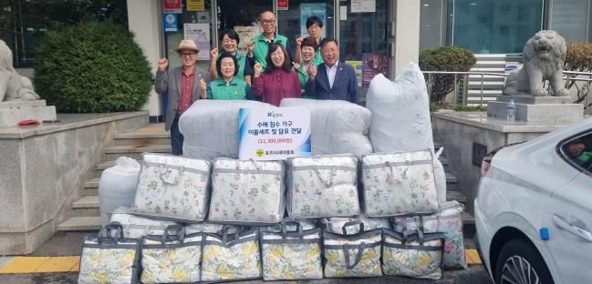 (중부시사신문) 포천시새마을회는 지난 7월 집중호우로 피해를 입은 수해 침수가구에 이불세트와 담요를 전달했다.
