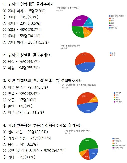 이러한 노력으로 체험단 200명 중 170명(85%)이 응답한 만족도 조사에서 전반적 만족도는 88.9%, 향후 크루즈관광 재참여 의향은 90%가 긍정을 선택, 도민 참여형 정책의 성공을 입증했다.