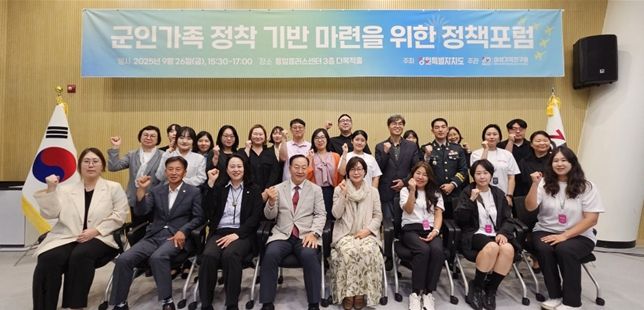 (중부시사신문) 강원특별자치도는 도 지역소멸대응정책관과 도 여성가족연구원(원장 김숙영)이 공동 주관하여 9월 26일 통일플러스센터에서 '군인가족 정착 기반 마련을 위한 정책포럼 포럼'을 개최했다.