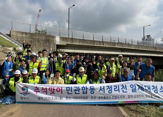이번 행사에는 삼성전자, 코오롱글로벌, 한국토지주택공사(LH), 고덕동 행정복지센터 등 지역의 주요 기관과 기업체 50여 명이 함께 참여해 추석을 맞아 더 깨끗하고 쾌적한 지역 하천을 만들기 위한 뜻깊은 시간을 가졌다.