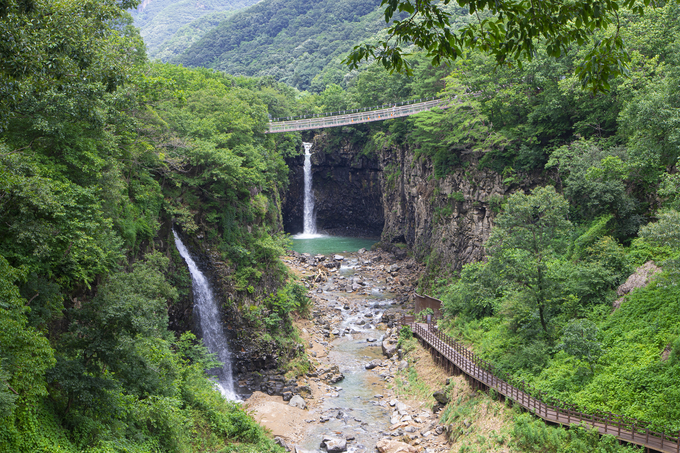 재인폭포는 전망대에서 협곡을 마주하고 감상해도 아름답지만 출렁다리에서 보는 모습과 데크길을 따라 폭포 아래에서 보는 모습이 각기 다른 매력이 있다. 이왕 방문했다면 다양한 모습을 보는 걸 추천한다.