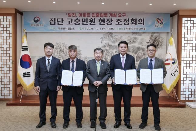 권익위는 회의에서 이해관계자들의 의견을 조율해 ▲자산관리공사가 인근 국유지를 당진시에 매각하고, ▲당진시는 해당 토지를 도로로 매입·관리하며, ▲아파트 입주민들은 확보된 도로의 공용 사용을 허용하는 내용으로 합의안을 확정했다.