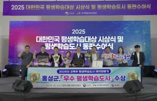 (중부시사신문) 홍성군은 지난 1일 정부세종컨벤션센터에서 열린 ‘2025 대한민국 평생학습대상 및 평생학습도시 동판수여식’에서 교육부장관 기관표창을 수상하며, 전국 평생학습 활성화를 선도하는 도시로 위상을 높였다.