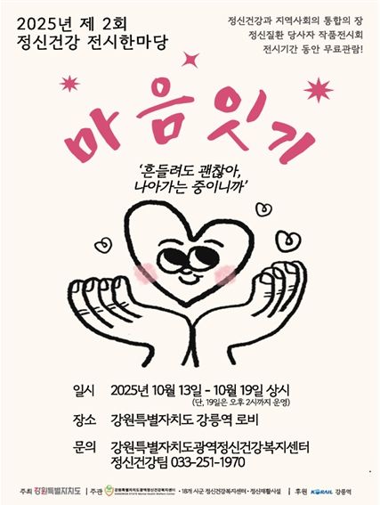(중부시사신문) 강원특별자치도(도지사 김진태)와 강원특별자치도광역정신건강복지센터는 10월 13일 오전 11시, 강릉역 1층 로비에서 '제2회 정신건강 전시한마당' 개막식을 열고 전시의 시작을 알렸다.
