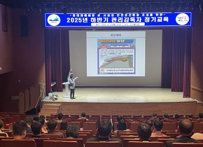 (중부시사신문) 예산군은 지난 13일 군청 추사홀에서 중대재해 예방과 안전한 근로환경 조성을 위해 ‘2025년 하반기 관리감독자 집체교육’을 실시했다고 밝혔다.