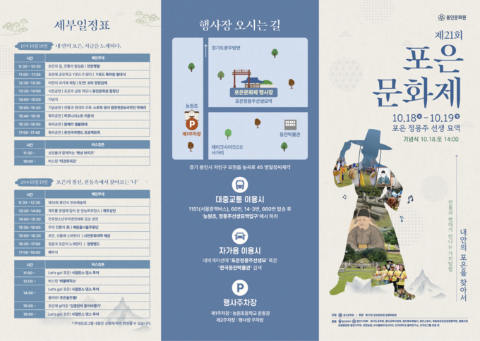 용인문화원(원장 최영철)은 오는 10월 18일(토)부터 19일(일)까지 이틀간 포은 정몽주 선생 묘역 일원에서 ‘제21회 포은문화제’를 개최한다.