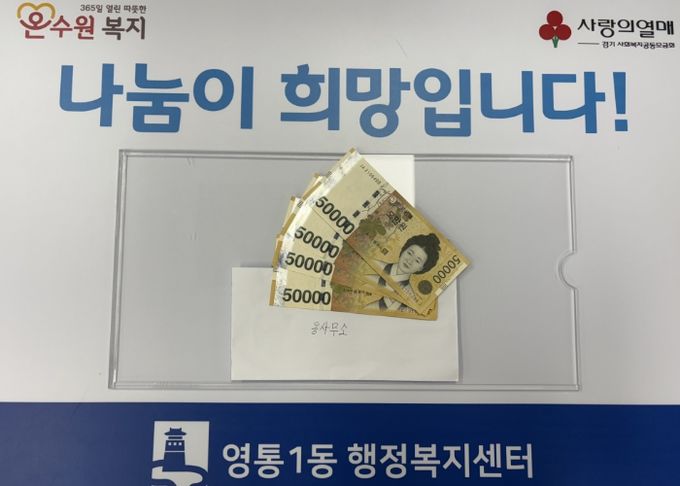 신한길 영통1동장은 “도움을 받던 분이 다시 나눔을 실천하는 모습에 큰 감동을 받았다”며 “지역사회 내 선한 영향력이 더욱 확산되어 모두가 함께하는 따뜻한 공동체가 만들어질 수 있도록 노력하겠다”고 말했다.