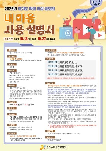 (중부시사신문) 경기도교육복지종합센터가 경기도교육청 소속 초 중 고등학교 학생들을 대상으로 ‘2025년 경기도 학생 영상 공모전’을 개최한다.