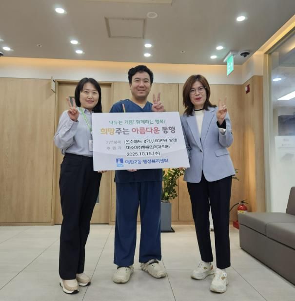(중부시사신문) 지난 15일, 수원시 영통구 소재 미소마취통증의학과의원은 관내 저소득 어르신들이 따뜻한 겨울을 보낼 수 있도록 매탄2동 행정복지센터에 100만원 상당의 온수매트 8세트를 기부했다.