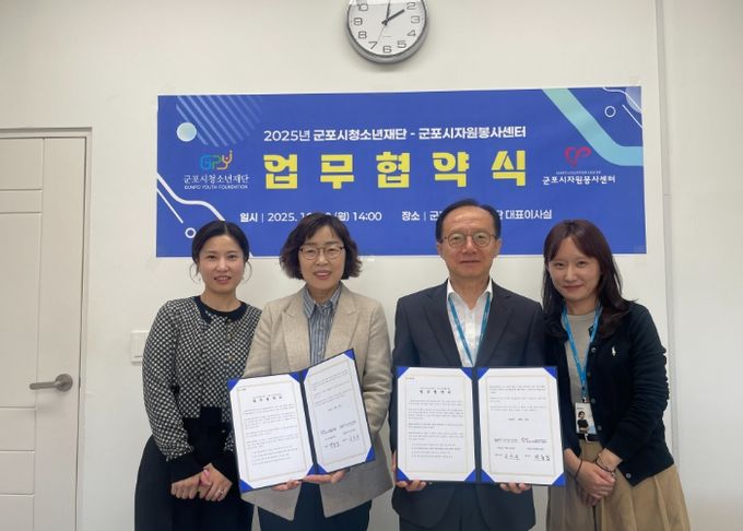 이날 협약식에는 김덕희 군포시청소년재단 대표이사와 이춘도 군포시자원봉사센터 사무국장을 비롯한 양 기관 관계자들이 참석했다.