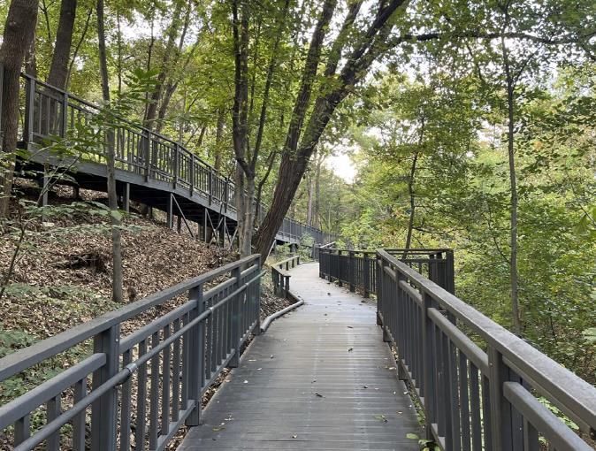 이곳의 무장애 데크길은 남녀노소 누구나 천천히 걷기 좋은 길로, 도심 속에서도 자연의 품에 안긴 듯한 평온함을 전한다.