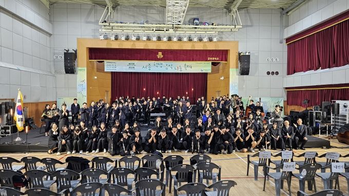 (중부시사신문) 세종특별자치시교육청은 11월 4일에 금호중학교 다목적강당에서 금호중학교(교장 강승연, 이하 금호중)의 ‘금호윈드오케스트라’(지도교사 조현영, 지휘자 연춘흠)와 연서중학교(교장 유효종)의 ‘연서오케스트라’(지도교사 이은정, 지휘자 김채연)가 함께 만드는 ‘2025 세종예술온(ON)학교’ 예술학교 ‘세종 학생 음악 나눔 축제’를 성황리에 마쳤다.