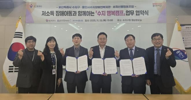 (중부시사신문) 용인특례시 수지구는 13일 용인시수지장애인복지관과 수지신용협동조합과 함께 저소득 장애아동의 복지 향상과 장애 인식 개선을 위한 ‘수지 행복캠프’ 추진 업무협약을 체결했다고 14일 밝혔다.