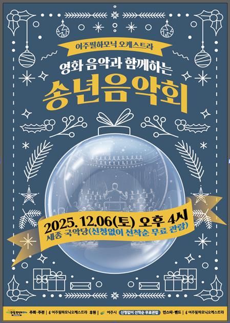 여주필하모닉오케스트라 박영규 단장은 “한 해의 끝에서 잠시 걸음을 멈추고, 영화 속 장면들이 음악과 함께 다시 피어나는 시간을 느껴보시길 바랍니다.”라고 전했다.
