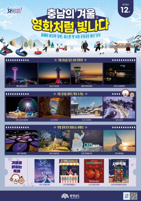 도 관계자는 “영화처럼 빛나는 충남의 겨울 속에서 연말의 주인공이 돼 보시길 바란다”라며 지역 관광 명소에 많은 방문을 부탁했다.