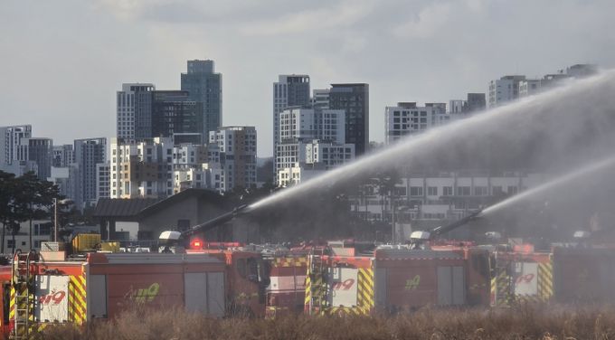 이날 훈련은 ▲드론을 활용한 화재 확산 확인 ▲공동주택 보호를 위한 방어선 구축 ▲중계 방수를 통한 화재진압 ▲호스릴을 이용한 잔불 제거 등 실전 중심으로 이뤄졌다.