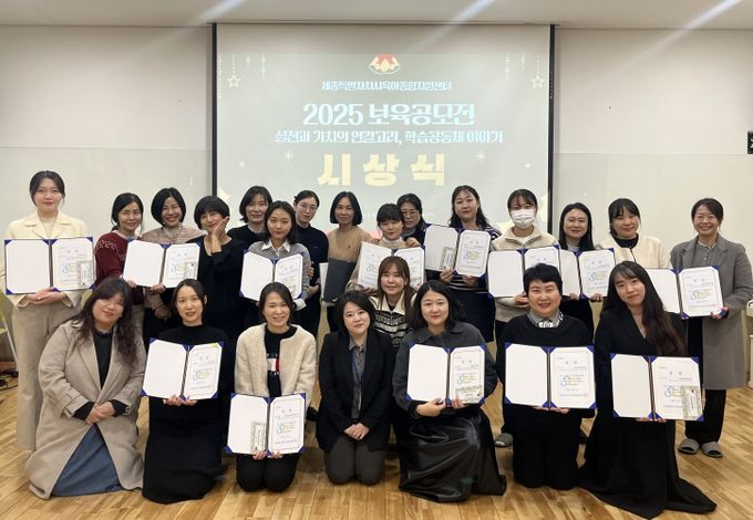 (중부시사신문) 세종특별자치시육아종합지원센터(센터장 임이랑)는 관내 보육교직원을 대상으로 진행한 2025 보육공모전 ‘실천과 가치의 연결고리, 학습공동체 이야기 ’의 수상작을 선정하고, 12월 4일 시상식을 개최했다고 밝혔다.