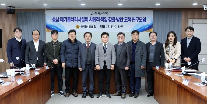 (중부시사신문) 충남도의회 ‘충남 폐기물처리시설의 사회적 책임 강화 방안 모색 연구모임’(대표 김민수)은 22일 보건복지환경위원회 회의실에서 회의를 열고, 폐기물처리시설의 책임 강화를 위한 종합 정책 방안을 논의하며 연구 활동을 마무리했다.