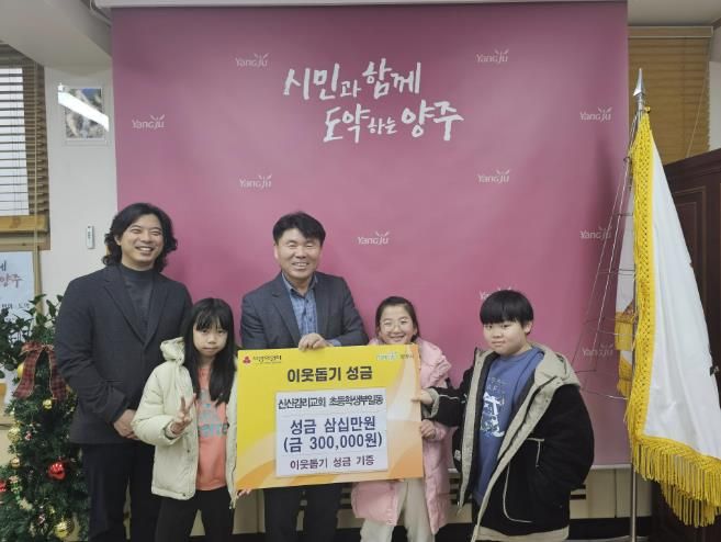 (중부시사신문) 양주시 남면 신산감리교회 초등부 4학년반 학생들은 지난 23일 남면 행정복지센터를 방문해 이웃돕기 성금을 전달하며 이웃사랑 실천에 앞장섰다.